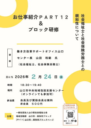 新しい年のスタートに、山口市・美祢市ブロックの仲間と楽しく交流しませんか?